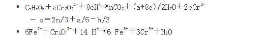 • 方法原理:水樣以K2Cr2O7 為氧化劑,在10.2mol/L硫酸介質(zhì)中回流氧化后,過量
