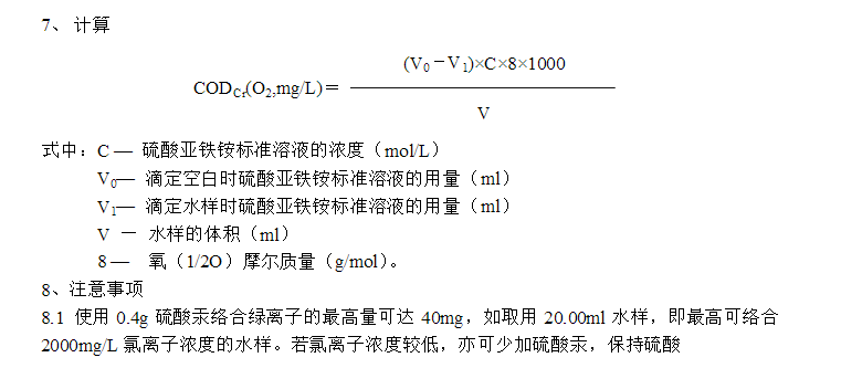 8.6 CODCr的測定結(jié)果應(yīng)保留三位有效數(shù)字。