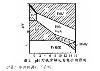 當零價鐵如鐵屑(活性炭)作為主填料的靜態床或滴流床與廢水發生電化學反應時, 鐵與炭形成無數微小的原電池,零價鐵作為陽極氧化而消耗,發生的電極反應如下: