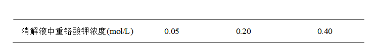 消解液:稱(chēng)取9.8 g重鉻酸鉀(分析純)、25.0 g硫酸鋁鉀(分析純)、5.0 g鉬酸銨(分析純),溶解于250 mL水中,加入100 mL濃硫酸,冷卻后,轉(zhuǎn)移**500 mL容量瓶中,用蒸餾水稀釋**標(biāo)線。該溶液重鉻酸鉀濃度約為0.4 mol/L (C = 1/6 K2Cr2O7)。