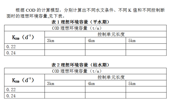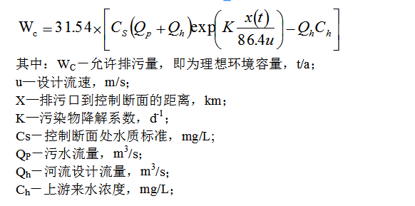 COD屬于可降解污染物用一維模型計算理想環境容量,對于點源排放,令混合后水質濃度C等于水質標準CS,由下式可計算河流的允許納污量: