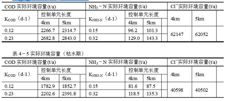 表4-4實際環境容量(平水期)