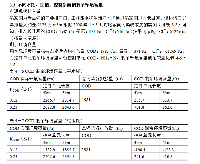 值、控制斷面的實際環境容量