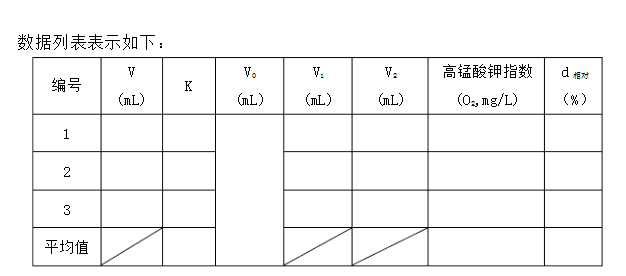式中,V0—空白實驗中高錳酸鉀溶液消耗量(mL);        V2—水樣量(mL);