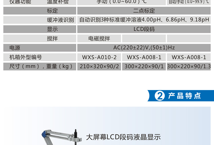 2.自動(dòng)標(biāo)準(zhǔn)緩沖溶液識(shí)別功能、二點(diǎn)校準(zhǔn)